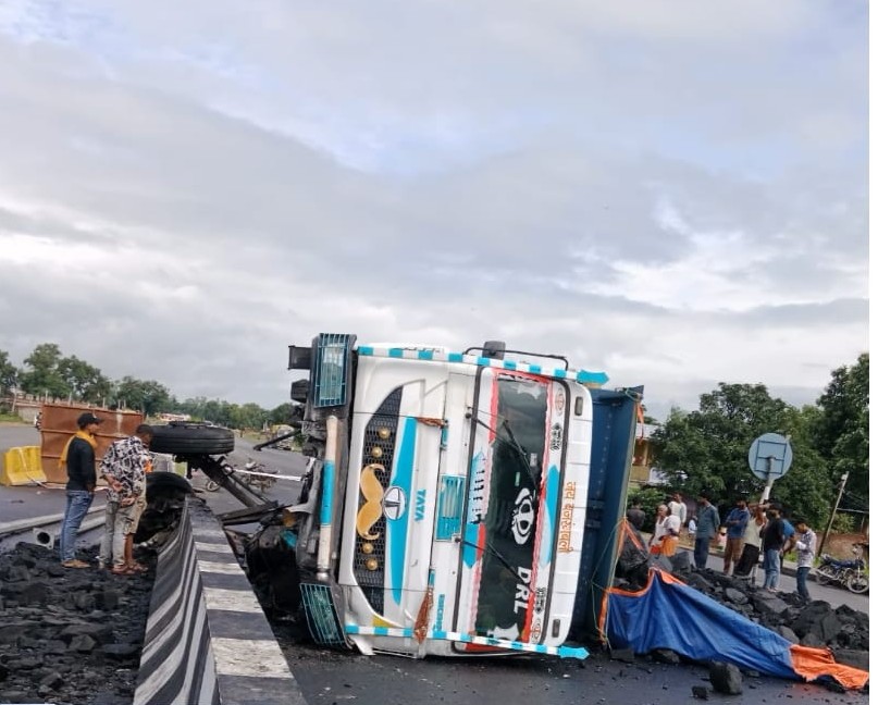 गढ़वा जिला के मेराल थाना के अंतर्गत बाईपास के किनारे कोयले से भरी एक ट्रक अनियंत्रित होकर पलट गई इसमें बताया जा रहा है कि ट्रक के ड्राइवर और खलासी को गंभीर चोटे आई है जिनको ग्रामीणों की मदद से नजदीकी अस्पताल में भर्ती कराया गया है।