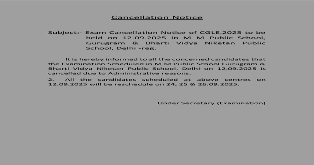 मिली जानकारी के मुताबिक बताया जा रहा है कि SSC CGL एग्जाम में 2814604 कुल उम्मीदवार शामिल हो रहे है जिसका एग्जाम 12 से 26 सितंबर तक कराया जाना था जिसमें कुल 129 शहरों में 260 परीक्षा केंद्र बनाया गया था जिसमें एसएससी में नोटिस जारी करके बताया था कि सभी परीक्षा केंद्र पर व्यवस्थित तरीके से व्यवस्था की जाएगी जिसमें एससी ने बताया था कि 2025 के टियर 1 एग्जाम में एडमिट कार्ड के सभी अनुदेशक को पालन करना होगा परीक्षा में कोई भी गड़बड़ी होने पर या उल्लंघन पाए जाने पर कार्रवाई की जाएगी।